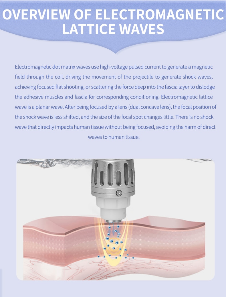 Electromagnetic: high voltage pulsed current coming through the coil produces a magnetic field, then pushing the diaphragm motion to produces shock waves,it would focus on, flat trajectory, or scattered into the body and make the appropriate treatment