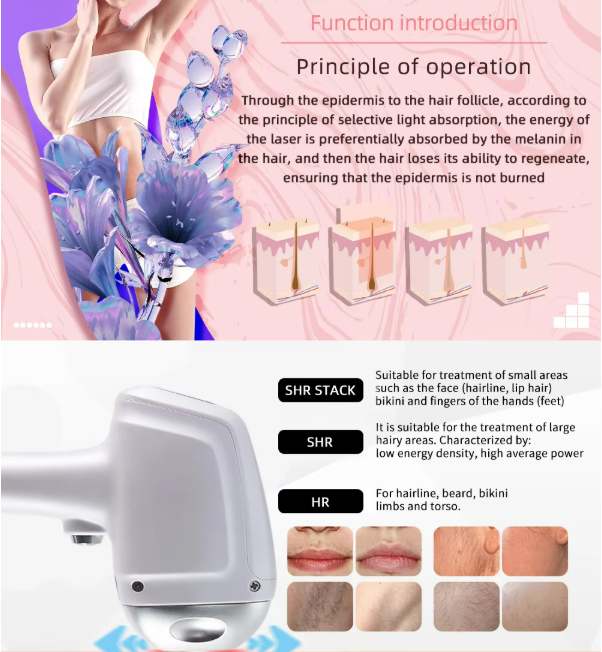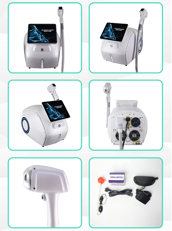 Diode Laser Hair Removal Skin Rejuvenation Machine 808nm Wavelength Triple Cooling System Changeable Tips Portable